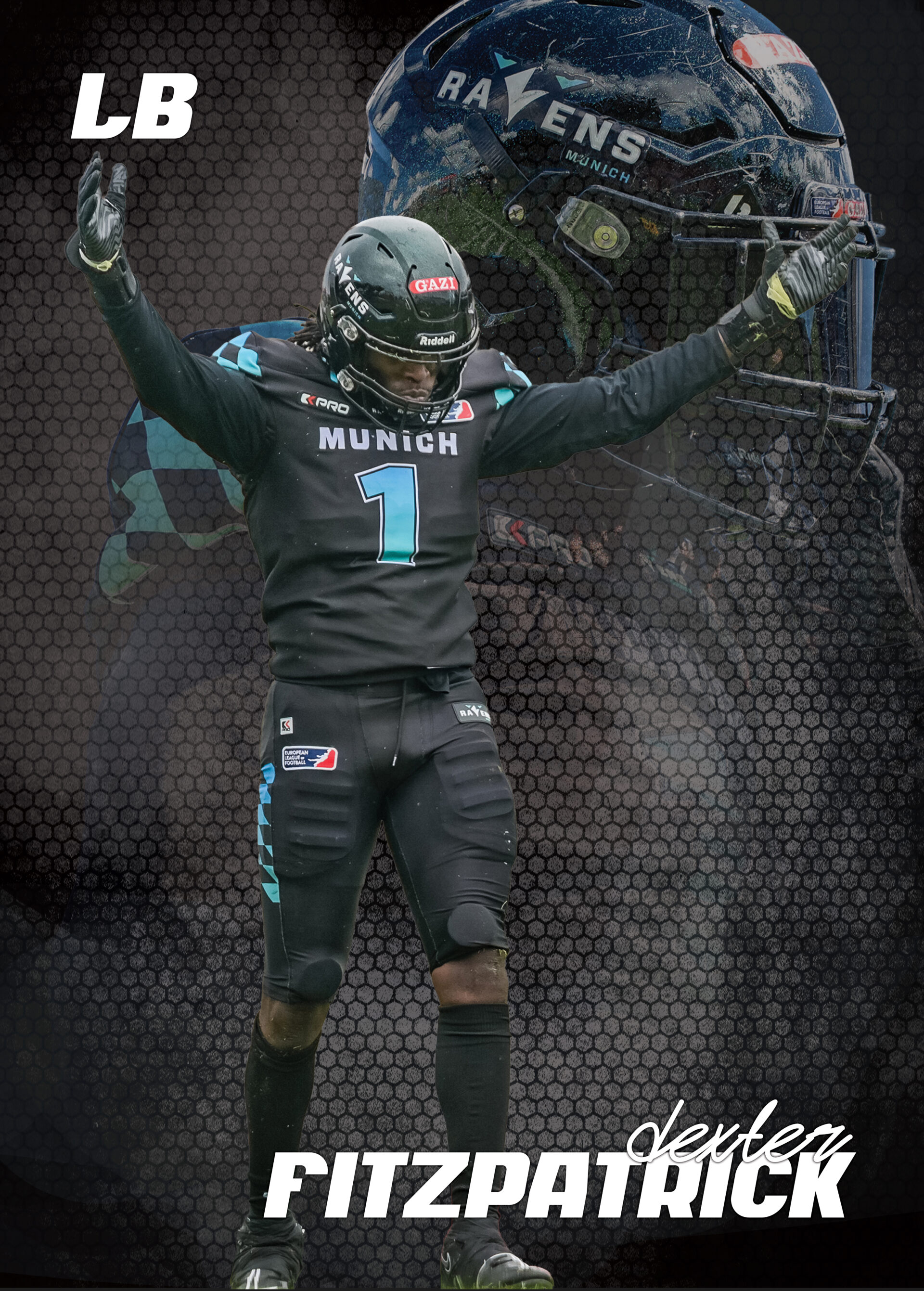 Dexter Fitzpatrick is an explosive US-American linebacker who successfully transitioned from a dominant collegiate career to the European League of Football (ELF) as a key A-Import for the Munich Ravens in the 2025 season. Known for his relentless sideline-to-sideline motor, excellent run-stopping physicality, and disruptive ability in the backfield, Fitzpatrick was immediately expected to be a cornerstone of the Ravens’ aggressive defense.