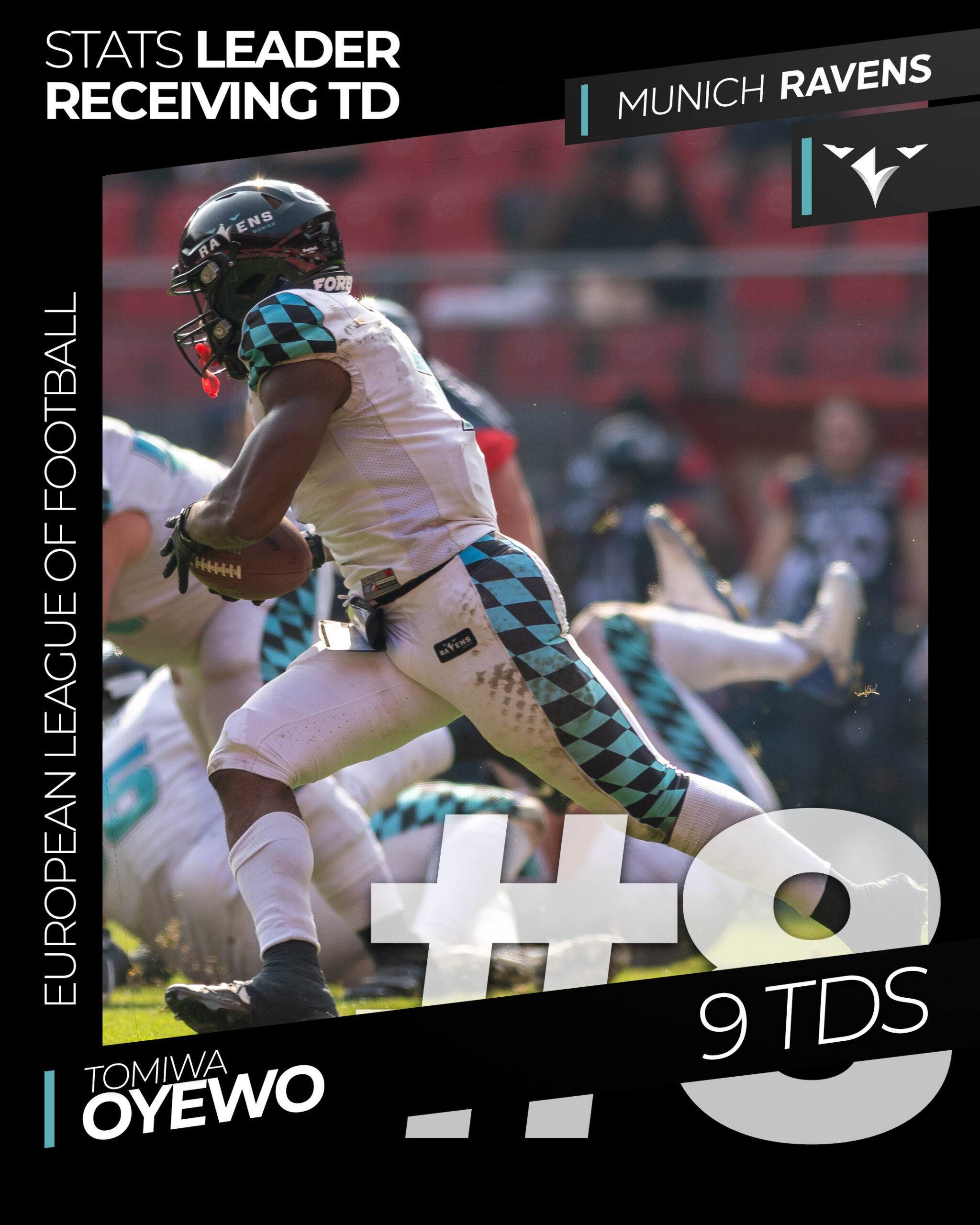 Tomiwa Oyewo is widely regarded as one of the most dynamic and versatile running backs currently playing in the European League of Football (ELF). Born in Dublin, Ireland, Oyewo possesses an explosive combination of speed, agility, and the necessary power to break tackles, traits that make him a nightmare for opposing defenses. While establishing himself as an elite rushing threat, his background as a former wide receiver and safety also equips him with exceptional receiving skills out of the backfield, a factor he leverages to create matchup advantages. Oyewo began his football journey in Ireland before making a significant impact in the German Football League (GFL) with the Allgäu Comets. His ascendancy continued in the ELF, where he showcased his dominance with the Munich Ravens, leading the league in rushing touchdowns in his debut season (2023).