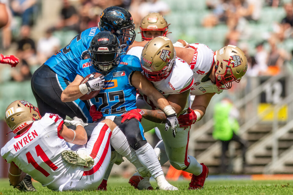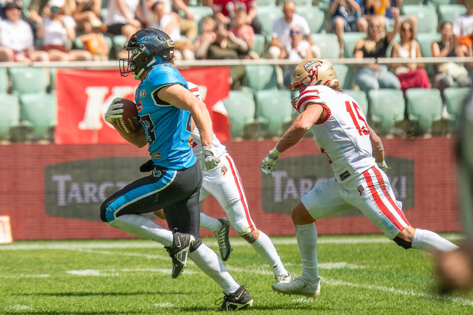Die Berliner und ihre Offense wurden von vielen vor der Season sehr stark eingeschätzt. Die Panthers wurden ohnehin als sicherer Playoff Contender gehandelt. Es war ein erwartungsgemäß geiles Spiele vor ordentlich gefülltem Haus. Es bleibt uns mehr in Erinnerung als „Kicking Ball Gate“ mit Dominik Eberle und dem beeindruckend martialischen Einlauf der Berlin Thunder.