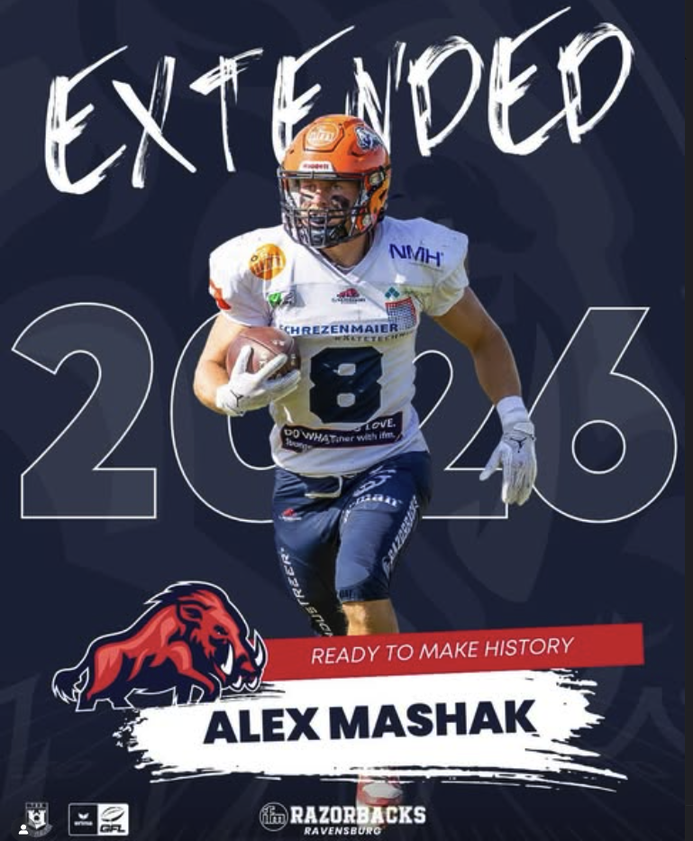 Alex Mashak is a high-energy American defensive lineman who has quickly become the cornerstone of the ifm Razorbacks’ defense since his arrival. Hailing from Wadena, Minnesota, Mashak brings a disruptive blend of explosiveness, speed, and relentless drive to the German Football League (GFL) trenches. Known for his exceptional “motor” and ability to win one-on-one matchups, he is highly effective at both stopping the run and applying consistent pressure on the quarterback. His contract extension for the 2026 season secures a vital component of the team’s defensive identity, with management citing him as an indispensable leader and a foundational force for the team’s future success.