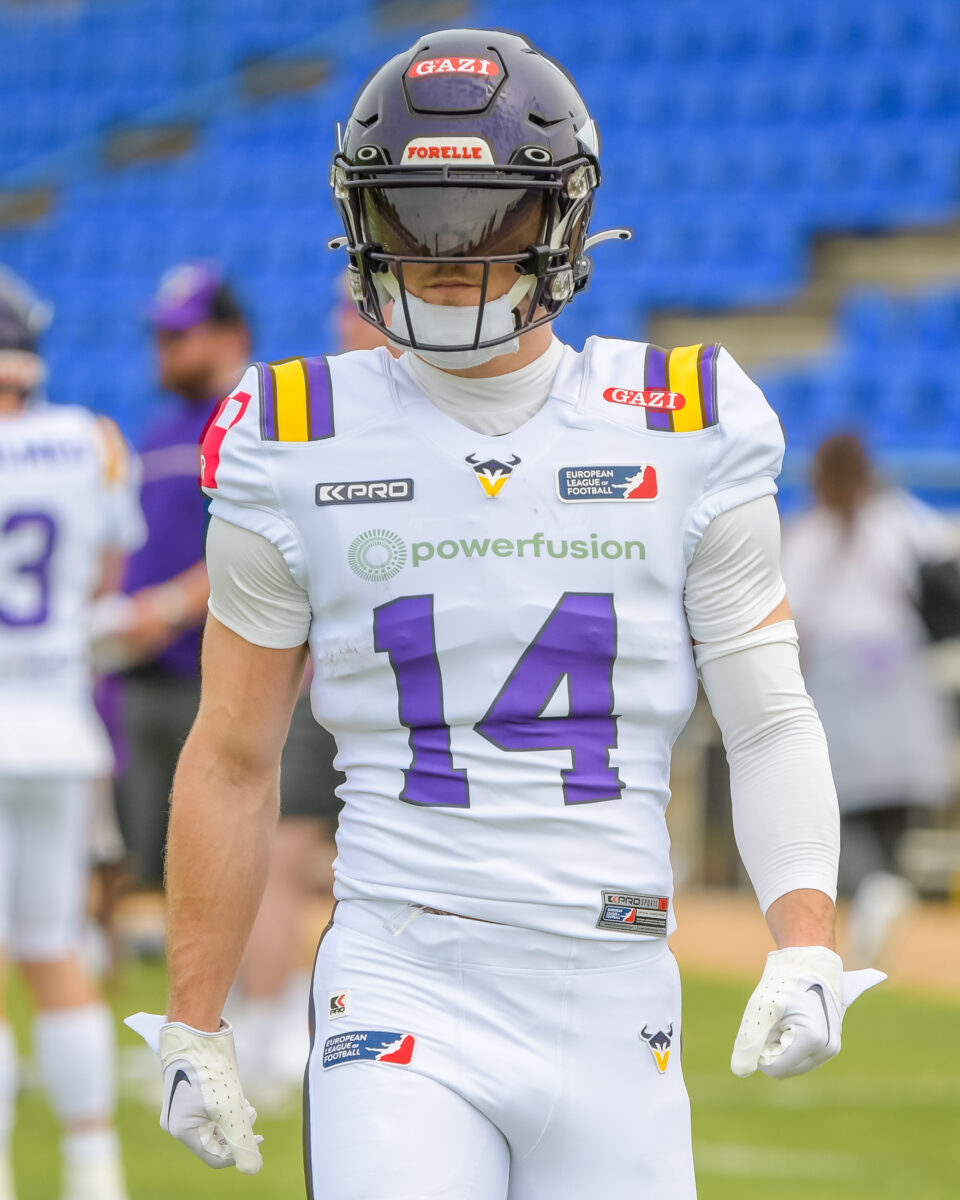 Johannes Schuetz (Vienna Vikings, #14), Fehervar Enthroners vs Vienna Vikings, American Football, European League of Football, week 1, Season 2024, 25.05.2024, Foto: Foot Bowl/JUST SHOTS