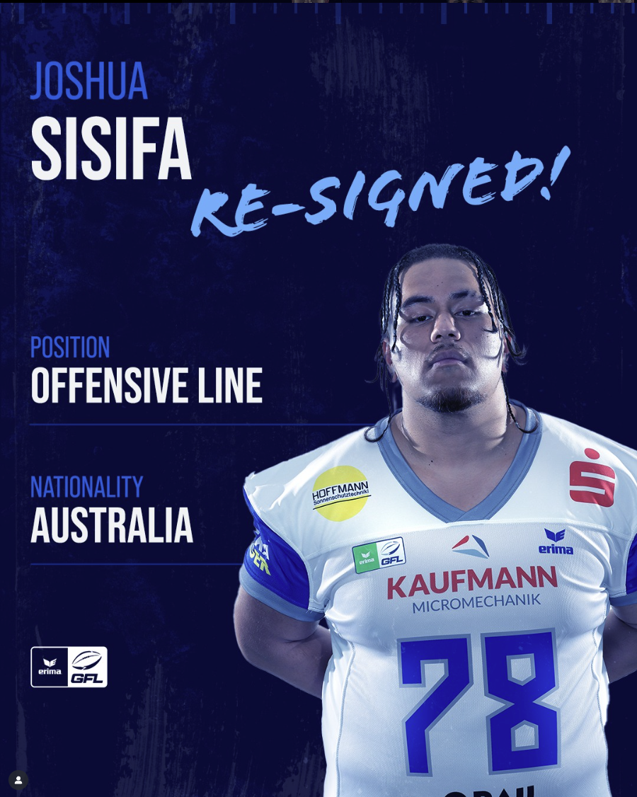 Joshua Tevita Alimoni Sisifa is a formidable Offensive Lineman who quickly cemented himself as a cornerstone of the Pforzheim Wilddogs’ offensive unit. Born in New Zealand with deep Tongan roots and raised in Australia, Sisifa initially excelled in Rugby League before transitioning to American Football, an experience that contributes to his powerful, aggressive blocking style. After developing his skills with the Moreton Bay Raptors and the Brisbane Rhinos, he made the significant step to Europe in 2025, joining the Wilddogs. Despite being considered “undersized” for an international Left Tackle, Sisifa’s discipline, resilience, and high-level performance made him an invaluable asset during the team’s GFL campaign. His decision to re-sign for the 2026 season is a massive boost for Pforzheim, signaling his commitment to the “Wilddogs Family” and the club’s ambition to continue building a dominant presence in the German Football League (GFL).