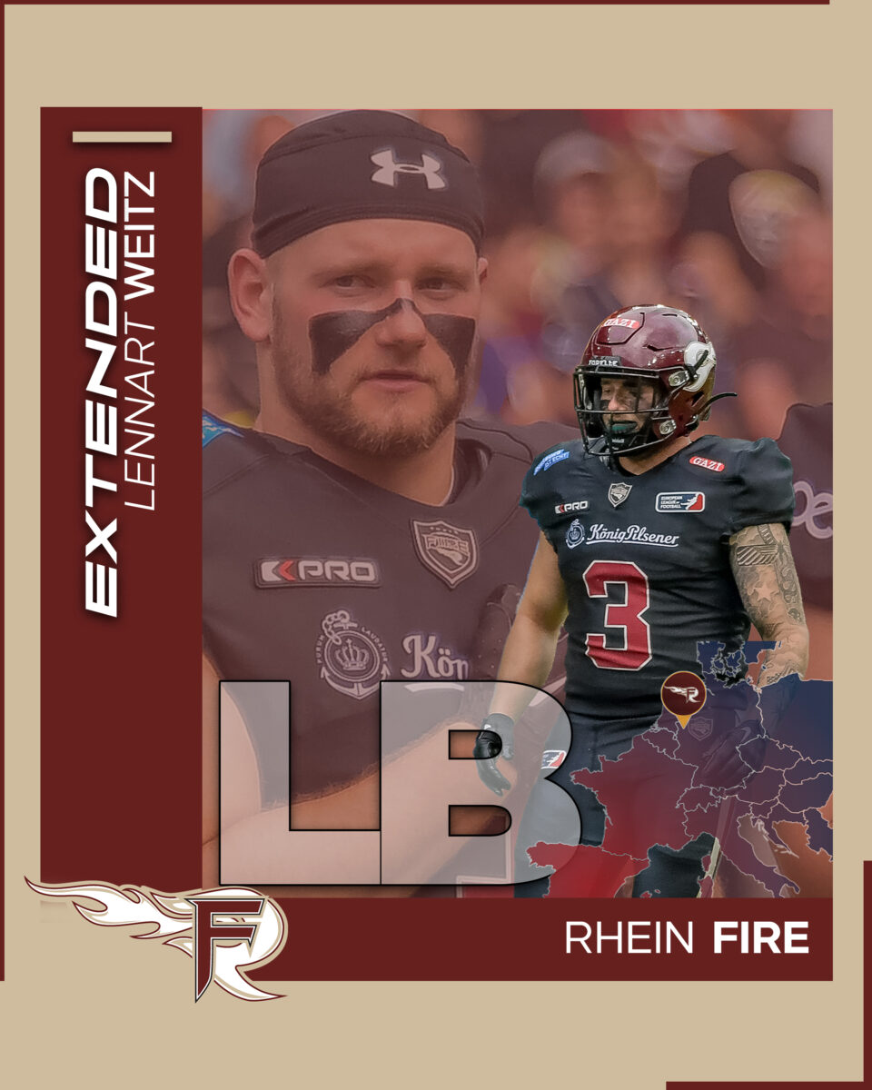 Lennart Weitz is a German American football player who has played as a linebacker for Rhein Fire in the European League of Football (ELF) since 2024. He began his career with the Cologne Falcons and later moved to the Cologne Crocodiles. In 2021, he was nominated for the “Rookie of the Year” award in the ELF. Lennart previously played for the Cologne Centurions together with his brother Fabian Weitz.