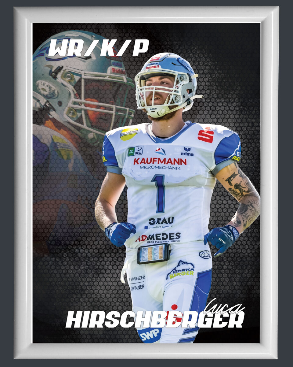 Hirschberger’s commitment to the club is strong; he confirmed his return for the 2026 season alongside Quarterback Drequan Harris, aiming to solidify the team’s position in the GFL. In the 2025 GFL season, he delivered significant performance, particularly in receiving, which makes him one of the most reliable German players on the team’s offense.