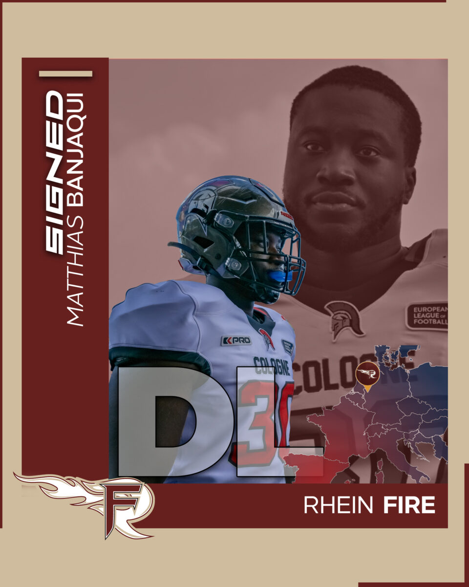 Matthias Banjaqui is a defensive lineman for Rhein Fire in the European League of Football. He has an impressive height of 188 cm and a weight of 103 kg. His previous stops include the Aachen Vampires, the Cologne Falcons and the Cologne Centurions. He will play for Rhein Fire from 2025.