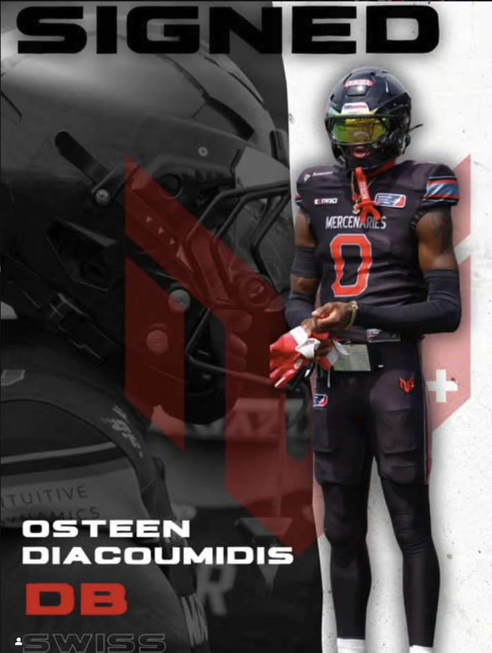 After developing through the Swiss youth ranks, Diacoumidis made the jump to the ELF and has shown continuous improvement in the highly competitive league. He has been successfully re-signed for the 2026 season, demonstrating the Mercenaries’ commitment to building a strong core with local talent. Osteen is known for his leadership qualities and commitment to the team, and he is expected to step into an even larger role next season, anchoring the secondary alongside the team’s import players. His versatility allows him to cover slot receivers and support the box, making him a valuable and dynamic asset for the Swiss franchise.