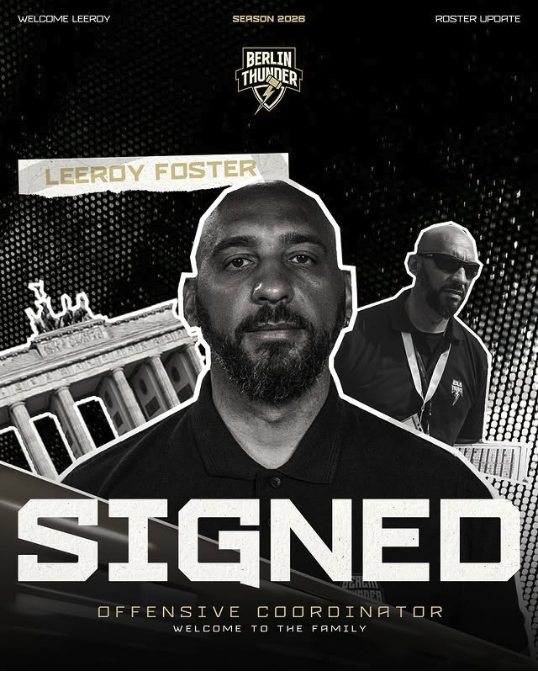 Leeroy Foster is a deeply rooted figure in the Berlin American Football community, bringing decades of experience as both a player and coach to his new role as Assistant Head Coach and Offensive Coordinator for Berlin Thunder in the European Football Alliance (EFA) for the 2026 season. Known for his strong development focus, particularly with youth, Foster is a certified B-license coach and has a long history of leading local Berlin teams, including the Spandau Bulldogs and the Berlin Rebels. His appointment signals a clear strategic move by Thunder to re-establish strong regional connections while installing a highly experienced offense. Most notably, his hiring creates a unique and compelling storyline: he will be coaching his son, Tyler Foster, the 2025 ELF Rookie of the Year, for the first time at the professional level. Foster’s deep knowledge of the German talent pool, combined with his dedication to fundamental football, makes him a key pillar in the Thunder’s rebuild under new leadership.