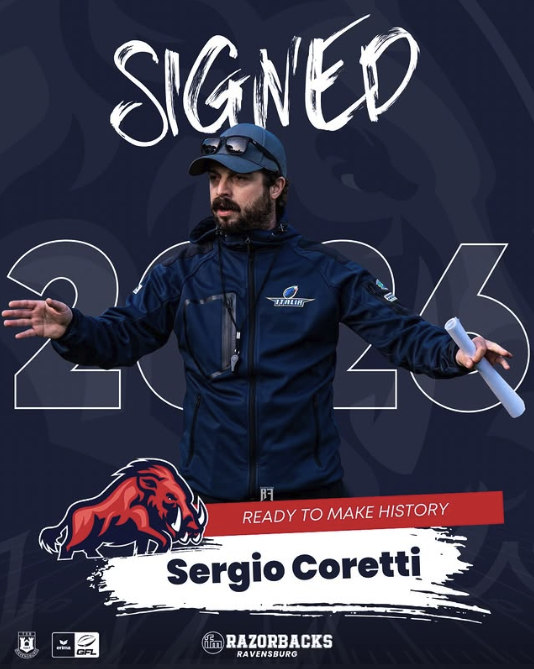 Sergio Coretti is a highly experienced Italian football coach joining the German Football League (GFL) to lead the defensive backs unit for the ifm Razorbacks Ravensburg in the 2026 season. Bringing over a decade of coaching expertise from both the national and international stage, Coretti is renowned for his detail-oriented approach and his ability to individually develop players within a clearly structured defensive system.